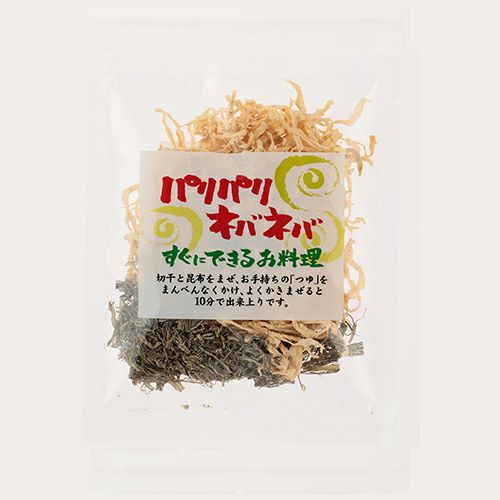 干し大根のパリパリ感ときざみ昆布のネバネバ感をミックスした新食感の食品です。干し大根をさっと水に通し軽く搾ってから昆布と混ぜ、ご家庭でお使いの「つゆ」(100ml程度)をまんべんなくふりかけてから、よく混ぜ合わせてください。10分程度で、干し大根のパリパリ感、昆布のネバネバ感が出てきます。